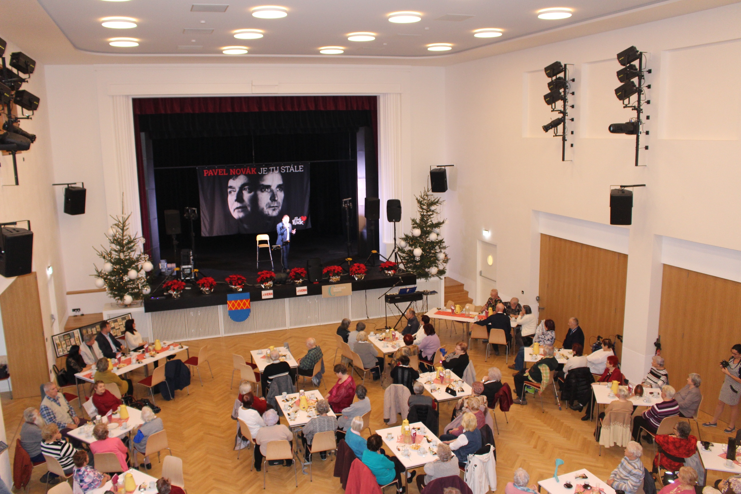 Ve Městském kulturním středisku Kojetín se představil populární přerovský zpěvák Pavel Novák, který svým hudebním vystoupením s názvem „Krásné svátky" naladil seniory na pravou vánoční atmosféru. Mnoho z nich neváhalo a zatančilo si na písně svého mládí a zazpívalo si vánoční klasiky. Mikuláš, čert a anděl obdarovali přítomné výbornými pralinkami a vánočními perníčky. Starosta, ředitelka i zástupci naší firmy popřáli všem přítomným krásné svátky a zábava pokračovala až do pozdního odpoledne.